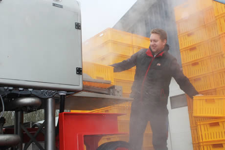 Het tuinbouwloonbedrijf van Dennis ziet het wassen van steunen als aanvulling op de al bestaande activiteiten. Hij ruimt en stoomt ook. Daarnaast kunnen er, met de nieuwste aanwinst, ook kratten mee gewassen worden.