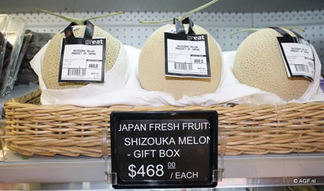Het product wordt verkocht voor prijzen waar je u tegen zegt. Wat te denken van uien per stuk verpakt voor 46 eurocent, Japanse Shizouka meloenen ter waarde van 46 euro per stuk en twee Japanse perziken voor 16 euro?