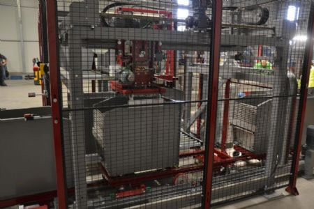 De containers worden vervolgens naar de sorteerruimte gereden en één voor één gelost door middel van een portaalrobot. Het ledigen van de container vindt plaats aan de voorzijde. Hierdoor rollen de komkommers gecontroleerd en zonder beschadiging op de aanvoerband van de sorteerder. Halverwege wordt erdoor een duwarm de achterplaat naar voren gedrukt om de laatste containers eruit te krijgen, waarna de klep weer wordt gesloten en de volgende container gelost kan worden.