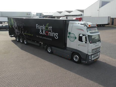 "We zijn trots dat we zo’n klant als F&K hebben en daarom hebben we in 2 trailers in de kleur van F&K gezet”, aldus mededirecteur Rob van Dommelen. "In verband met het voornamelijk zwarte oppervlak hebben we voor 2 nieuwe Volvotrekkers “ons rood “ vervangen voor het mooier passende grijs."