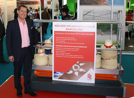Tholen - Tijdens de Horti Fair introduceerde PB Techniek de PB-PV Solar buisrailkar. Volgens Michel Broch van de tuinbouwtoeleverancier is deze buisrailkar met zonnepaneel vooral een slimme combinatie van technieken. PB Techniek heeft een beursactie aan deze nieuwe techniek gekoppeld, want tuinders krijgen bij aankoop een "oplaadweekendje" Barcelona voor twee personen, met vervoer van en naar Schiphol per limousine, first class vliegreis en twee nachten verblijf in super-de-luxe hotel op de Rambla.