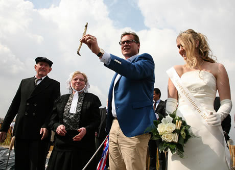 Directeur Paul Beck van de Floriade noemde zichzelf een gelukkig man, nu hij naast Koningin Beatrix, ook de Aspergekoningin van 2012, Dianne Vlemmix uit het Limburgse Horst, in de Floriade kon ontvangen. "Het witte goud is de kroon op de Nederlandse tuinbouw, die zo belangrijk is voor de Nederlandse export."