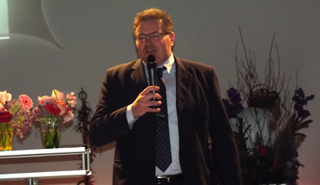 Mirk Oppenhuis de Jong was de dagvoorzitter. Hij kondigde de eerste spreker aan: Noud Janssen. Noud heeft in zijn portefeuille bij de LLTB ‘Kennis en Innovatie’. Noud blikte kort terug op de hele weg van plannen, tekeningen, bouw tot uiteindelijk de Floriade zoals die er nu staat. “We zijn uiteindelijk niet in tenten terecht gekomen, maar er staat een prachtige tuinbouwtentoonstelling”, lachte Noud. De Floriade zal het visitekaartje blijven in de vorm van de Green Campus. “Het wordt het Green Park van de toekomst. We zijn dan ook verheugd met het besluit van de HAS in Den Bosch. Zij zullen immers naar Venlo verhuizen. Dat sluit mooi aan bij onze doelstellingen”.