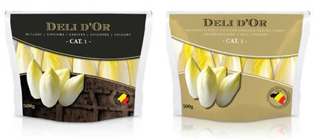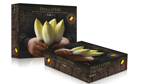 De aardappelen en witloof worden verpakt in een speciale Deli D'or-verpakking. Het witloof in iedere verpakking heeft zijn eigen kwaliteitskenmerken en is verpakt volgens normen vastgelegd in lastenboeken. Wij hebben 4 verpakkingen. Het assortiment bestaat uit dozen van 2,5 kg. Zakjes van 1 kg en 500 gram. In dit laatste segment hebben we een onderscheid gemaakt tussen witloof geteeld op hydro-cultuur en witloof geteeld op traditionele wijze. "Het verschil is vooral in de teeltwijze, bij grondwitloof is het veel arbeidsintensiever. Daarnaast is grondwitloof ook heel streekgebonden en wordt alleen in de omgeving van Brussel geproduceerd van oktober tot half april. Dus we zijn nu net uit het seizoen."