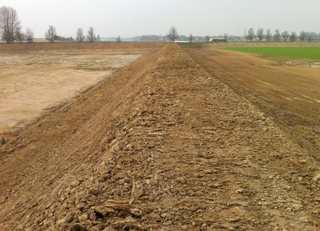 De dijken voor het 1e waterbassin voor van der Kaaij zijn al aangelegd