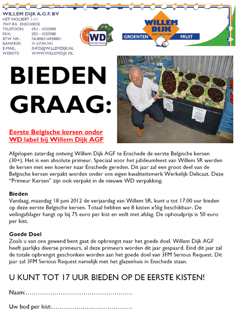 Tholen - Zaterdagavond was het een drukte van belang op Het Wolbert in Enschede. Willem Dijk vierde daar het 25-jarig jubileum van zijn groothandel en ook nog eens zijn 60e verjaardag. Tal van kennissen en relaties kwamen Willem junior en senior feliciteren met deze jubilea. Senior hield nog een speech, waarna Willem Junior het eerste nummer van het jubileummagazine overhandigde aan Senior. Dat was de aftrap van een gezellige feestavond met onder meer een optreden van Bonnie St. Claire.In de loop der jaren is de groothandel van Willem Dijk uitgebreid met importactiviteiten en de laatste jaren wordt ook de exportmarkten betreden. Merken als Werkelijk Delicaat, Filosofo, Tukker Tuffels, Amador en ZuidFruit zijn inmiddels gerenommeerde merken van kwalitatief hoogwaardige AGF-producten, waarmee Willem Dijk groot is geworden. "Als je je wilt onderscheiden van de massa, moet je een merk opbouwen, waar je voor de volle 100% achterstaat", zo zegt Senior in het door Uitgeverij Boekhout gerealiseerde magazine.