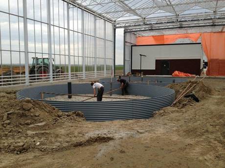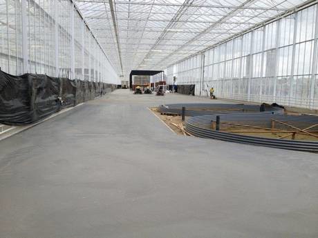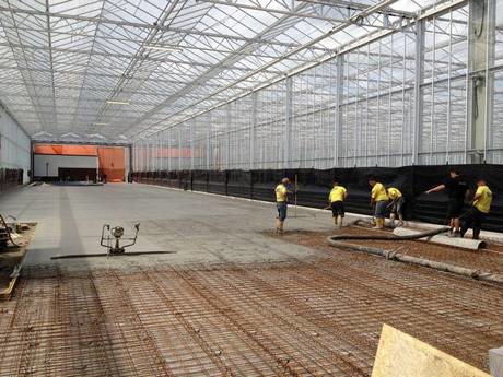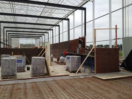 Buiten de kas wordt er ook hard gewerkt door bouwbedrijf Hofman. Zij zijn bezig met het opbouwen van de nieuwe kantoren en kantine voor fase 2.