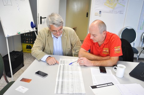 Geoloog Evert van de Graaff neemt met Pieter Wijnen enkele details door