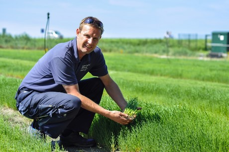 Hubrecht Janse op het 1 hectare grote perceel met zeekraal
