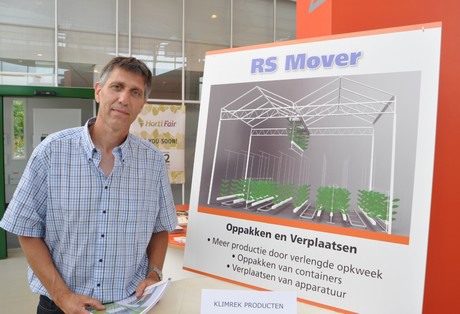 Onlangs rondde Klimrek de eerste pilot met het RS Mover systeem af. Hierbij bleek dat de voorzieningen voor de water toe- en afvoer goed functioneerden in het systeem en het gewas soepel was te verplaatsen naar een andere tralie. “Het is een simpel systeem. Je gebruikt de helft minder ruimte, dus je stookt ook de helft minder”, vertelt de enthousiaste komkommerteler tijdens de Horti Fair Vakperspreview. “Met het systeem is meer te bereiken dan het terugbrengen van de energiekosten. Het is bijvoorbeeld ook mogelijk om in de helft van de kas de planten op te kweken voor het volledige areaal, terwijl de andere helft van de kas nog in productie is. Hierdoor kun je bijvoorbeeld wel die dertig cent per komkommer pakken in de tijd dat je normaal leeg ligt.”