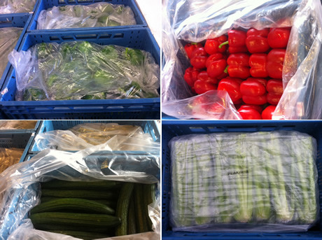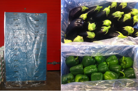 "Peakfresh biedt niet alleen de mogelijkheid om producten lang te bewaren, maar ook zonder flowpack te vervoeren naar verre bestemmingen. Natuurlijk komen de producten claimvrij aan. Zo hebben we een proef gedaan met Spaanse kasgroenten en die is erg goed uitgepakt. De producten, die je hier op de foto's ziet, zijn al veertien dagen oud, maar zijn nog super van kwaliteit", vertelt Jan. "Deze proef is uitgevoerd met een verpakking in de kist, maar we bieden ook Peakfresh-palletcovers aan, die net zo goed werken.