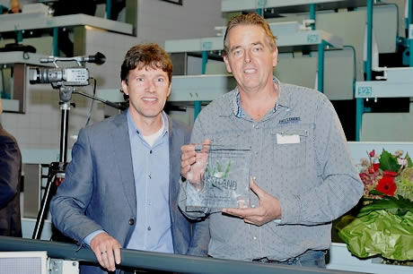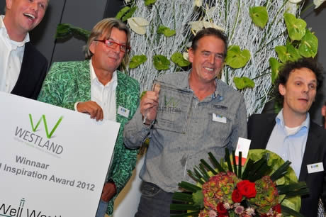 Juryleden Ferdi van Elswijk en Rob Baan reikten de Inspiration Award uit aan Jos Scheffers van Greenwell Westland