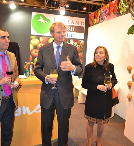 De Nederlandse ambassade hield op donderdagmiddag een receptie bij de stand van de Holland Fresh Group. Ambassadeur Kees van Rij en naast hem Landbouwraad Tineke Zwitser waren blij dat voor het eerst een gezamenlijke groep Nederlandse deelnemers naar Madrid was gekomen en wenste iedereen een goede beurs.