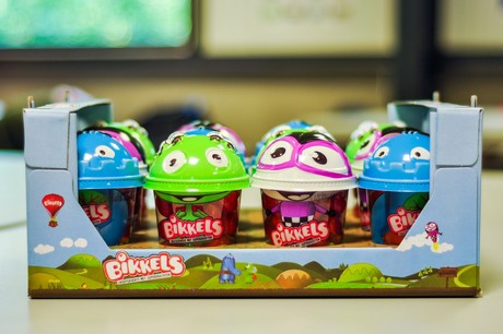 Via telersvereniging Fossa Eugenia is het concept uiteindelijk voorgelegd bij een aantal grote retailers. “Die reageerden allemaal enthousiast, maar helaas was er niet direct de ruimte voor een dergelijk idee. Anderzijds waren er afnemers die het niet aandurfden om voor de zoveelste keer een figuur aan een product te koppelen. “We zijn natuurlijk ook niet de eerste die met een kleurrijke verpakking en een figuur op de proppen komt. De Duitse retailer Kaiser’s Tengelmann zag echter wel heil in het concept en ontving de Bikkels met open armen. Sinds enkele weken worden er zo’n 600 Kaiser-winkels beleverd met die nieuwe superhelden en voor de Nederlandse distributie heeft Fossa Eugenia Van Gelder aangesteld. De bikkels worden erg positief ontvangen in de markt en het ziet er naar uit dat we de productie op moeten schroeven om aan de vraag te kunnen voldoen.”
