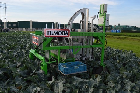 In het broccoliveld bevindt zich ook een robot, een oogstrobot welteverstaan. Tumoba, producent van deze robot, liet tijdens de open dagen het derde prototype van deze robot zien. De robot is uitgerust met schermherkenning, waardoor al rijdend door het veld de robot de oogstbare broccolischermen zoekt, vindt en afsnijdt om ze vervolgens via een lopende band in een opvangbak te laten belanden.