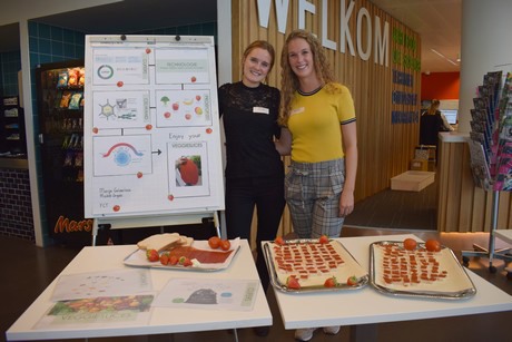 Marije Gelderloos en Mabel Engels met veggieslices van aardbei of tomaat voor op de boterham