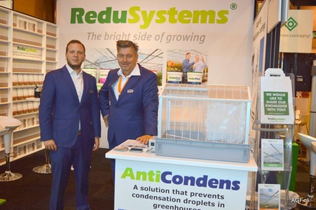 Joost Giles en Paul van Gils van Mardenkro, ook nieuwkomer op de beurs en deelnemer aan het Holland Paviljoen. Zij willen Spanje en omringende landen gaan veroveren met AntiCondens, het anti-condensmiddel voor plastic en glazen kassen.