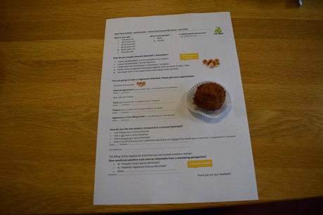 Demoveldcoördinator Arno van Oers test de knolselderij bitterbal uit bij bezoekers van het demoveld met de nieuwste vollegrondsgewassen. Na afloop van een bezoek krijgt iedereen een paar stuks om te beoordelen. Aangezien er de afgelopen weken belangstellenden vanuit heel de wereld kwamen kijken in de "showroom", zoals Arno het demoveld noemt, weet Rijk Zwaan meteen of de knolselderijsnack potentie heeft op de internationale markt.