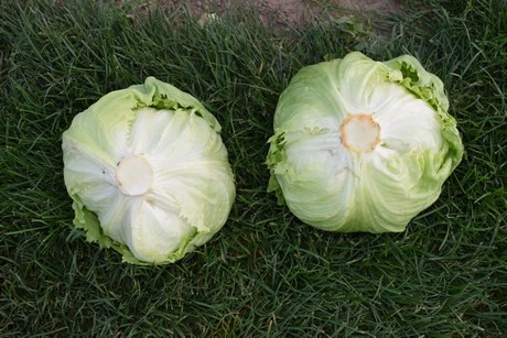 IJbergsla twee uur na het snijden, links mét en rechts zonder Knox-core