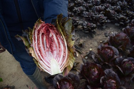 Een andere noviteit binnen sla is rode bindsla. “Om rood te kleuren, is licht nodig. Alleen de buitenste bladeren zijn rood, maar wij hebben een variëteit die ook inwendig rood van kleur is, dus zonder dat het zonlicht de bladeren bereikt."