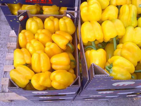 "We hebben net een week met veel donker en regenachtig weer achter de rug. De regen drijft hier sowieso de prijs op, omdat er simpelweg niet geoogst wordt. De komkommers trekken krom met donker weer en het aborteert vruchten. Dus daar zullen we ook wel een staartje van mee krijgen over twee weken. Voor het verloop van de markt hangt veel af wat de supermarkten gaan doen. De aanvoer zal niet minder worden. Wellicht zal de prijs iets gaan zakken, maar niet te veel", verwacht Kees.De paprika's vormen voor Frutas Luna het hoofdproduct. "Ook de prijs van rode paprika's vloog omhoog, omdat de regen samen viel met het wegvallen van de Nederlandse rode paprika's. Inmiddels zitten we weer op een normaal prijsniveau. De afzet van groene en gele paprika's liep even leuk, maar de markt is nu ook weer even een halt toegeroepen, maar dat is een kwestie van afwachten tot de groene Nederlandse aanvoer voorbij is", vervolgt de handelaar. "Ik zie de prijs van groene en gele paprika's volgende week wel stijgen. De gele om de simpele reden dat de telers ze laten hangen en ik verwacht dat Engeland volgende week gaat trekken aan groen."