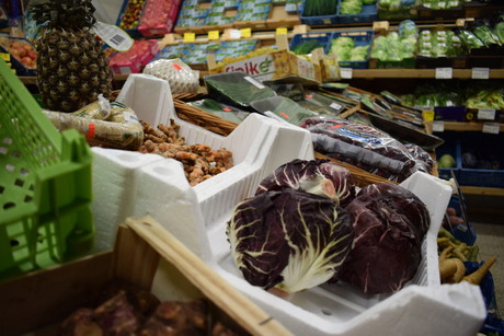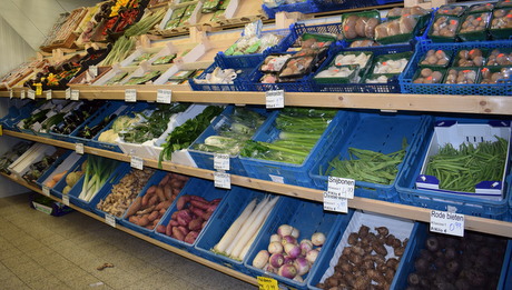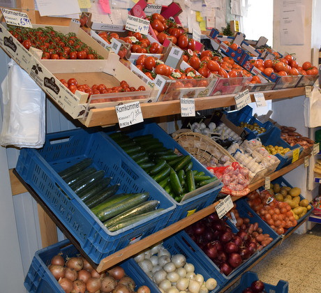Tomaten, komkommer en uien staan buiten de gekoelde ruimte