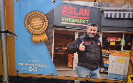 “Dagelijks, heel vroeg in de ochtend, ga ik zelf de producten uitzoeken bij de groothandels op het Food Centrum zodat ik de kwaliteit kan garanderen. Ik bestel nooit, 5 van de 10 keer is het niet wat je wenst. Mijn klanten zoeken ook alles zelf uit, dus ik wil dat ook voor hen doen”, vertelt Aslan. Dat en het geheim van zijn winkel vent hij goed uit. Het leverde hem al veel tevreden klanten plus de publieksprijs Gezond Oost op. Volgens 41% van de stemmers werkt hij het hardst om zijn aanbod gezonder te maken.