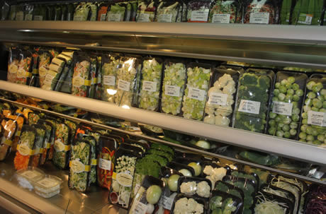 De vers gesneden groenten worden ter plaatse gesneden, verpakt en verkocht onder het eigen merk