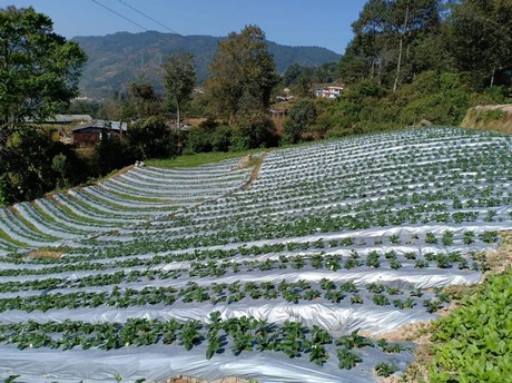 Uiteraard bezocht Jan ook enkele aardbeientelers in de Himalaya. De teelt van aardbeien staat hoog in de Nepalese bergen flink in de belangstelling, ontdekte Jan. “De werkomstandigheden zijn hier erg moeilijk, maar alleen al in het district Kakani zijn er 175 telers, overigens wel met kleine arealen. Desondanks zag het er veelbelovend uit.”
