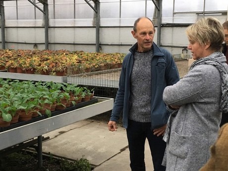 Alex met minister Schauvliege bij de bloemkool weeuwenteelt.