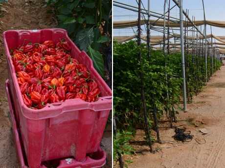 “We telen nu al zeven jaar verschillende soorten hete pepers", vertelt een van de telers. "De laatste twee jaren hebben we alleen nog habanero pepers geteeld. Deze variëteit verkoopt goed en heeft een betere kwaliteit." Het klimaat in de Wadi Araba zorgt voor bijna ziektevrije pepers. "We hebben onze problemen", zegt een andere teler. "De hitte en het zoutgehalte in de grond zijn hier enkele van. Het ontzouten van de grond is niet kosten-effectief. We gebruiken daarom een specifieke irrigatiemethode om met de zoutheid van de aarde om te gaan."