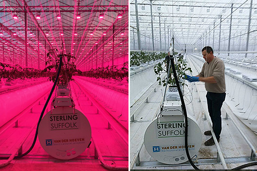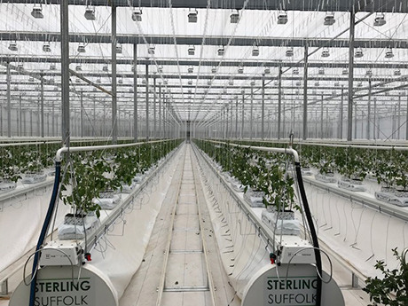 Vlak voor de kerst gingen de eerste tomatenplanten de nieuwe kas van Sterling Suffolk in. Het is inmiddels dus flink groen en roze bij het Britse bedrijf, gelegen nabij Great Blakenham. De LED-lampen verlichten de gewassen fel. "Het was een drukke maar geweldige week", vertelt de directeur Richard Lewis eind december. Het teeltbedrijf van 5,6 hectare is de eerste semi-gesloten kas in het Verenigd Koninkrijk. In de komende paar jaar zal het project worden uitgebreid naar 17 hectare.