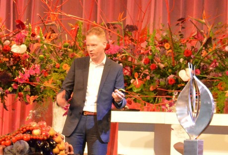 Het thema duurzaamheid werd vanuit drie hoeken belicht: door aspergeteler Peter Visser uit Limburg, die een subsector vertegenwoordigde die het met de warme en droge zomer misschien wel het zwaarst te verduren gehad heeft; door tomatenteler Wim Peters, die in 2016 zijn kas in 2 minuten verwoest zag worden door de befaamde 'supercell' (en zijn bedrijf weer van de grond af opbouwde); en door weerman Peter Kuipers Munnike die, het zal u niet verbazen, weet dat het klimaat warmer en de weersextremen heftiger worden.