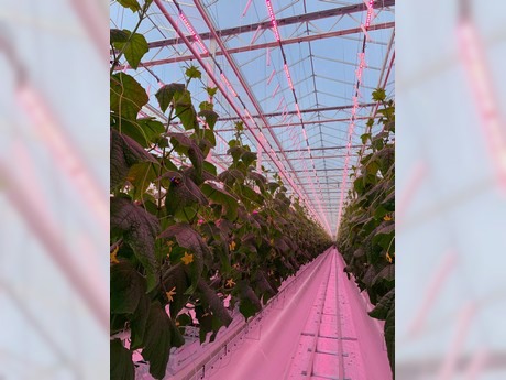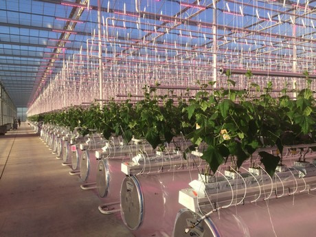 Twee Franse komkommertelers hebben een primeur te pakken. Ze zijn de eerste Franse telers die met LED-verlichting jaarrond komkommers gaan telen aan de hoge draad. "Over het algemeen stijgt de productie van komkommers met hogere lichtniveaus. Maar met LED's kunnen we de productie echt optimaliseren door het licht en de warmte afzonderlijk te sturen."