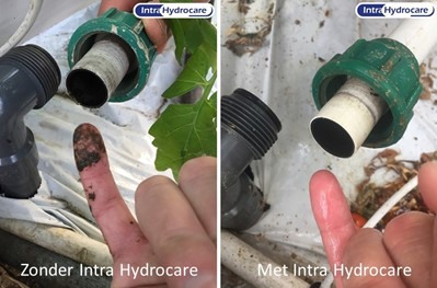 Intra Hydrocare is zeer effectief in het verwijderen van biofilm en tegelijkertijd het afdoden van pathogenen in het water. Vervuilde watersystemen en wateropslagtanks vormen een grote infectiebron voor pathogene schimmels en bacteriën. Fusarium, pythium, phytophthora, meeldauw, botrytis, agrobacterium, pseudomonas, erwinia, clavibacter en vele ander ziekteverwekkers worden geëlimineerd door Intra Hydrocare. Daarnaast voorkomt Hydrocare verstoppingen in irrigatiesystemen zodat een uniforme watergift gewaarborgd blijft.