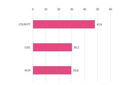 De Belgen vinden dat Colruyt de beste promoties geeft. Colruyt wordt gevolgd door de discountketens Lidl en Aldi. Dezelfde top drie geldt voor Vlaanderen, hoewel Albert Heijn dicht volgt op Aldi. In Wallonië is het een nek-aan-nekrace tussen de discountketens, maar hier wint Aldi nipt. In Brussel staat ook Colruyt op de eerste plaats maar wordt gevolgd door Delhaize en vervolgens door Aldi.