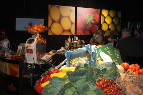Belangrijke producten van Groothandel Claessens zijn de cressen van Koppert Cress. Deze staan ook uitgebreid gepresenteerd in de stand en Alfred Verhagen geeft de bezoekers een lekkere smaakbeleving mee.