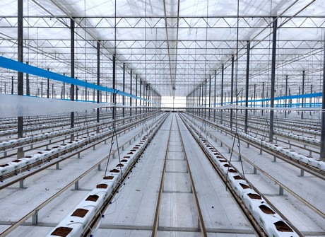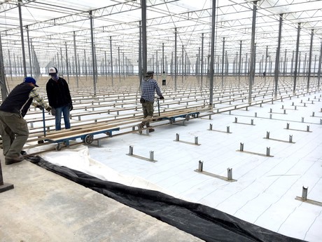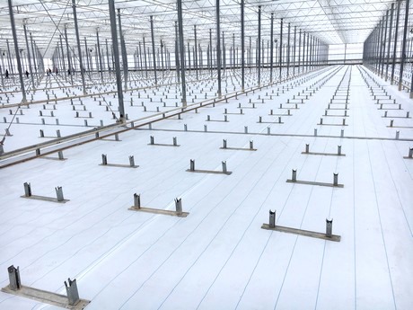 Het egaliseren van een bestaande kas is een heel project. Bij het Canadese Suntastic is het een kunst die ze inmiddels onder de knie hebben. De afgelopen jaren zijn twee van hun bestaande kassen op deze manier opgeknapt en vorig jaar was het tijd voor de laatste fase. Deze keer besloten ze om alle buizen en goten op rollen te zetten en naar de zijkant te verplaatsen. "Nu is het weer helemaal strak," laat hoofdteler Albert Janssen zien. Hij verhuisde begin deze eeuw van Poeldijk naar Canada.