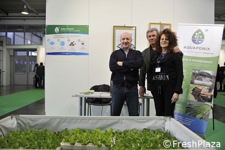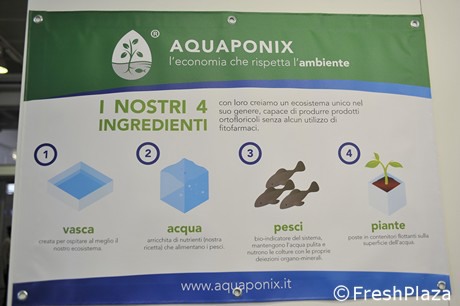 Aquaponix is een van de innovaties die zijn gepresenteerd tijdens Novel Farm in het Italiaanse Pordenone. Het is een systeem waarbij groenten, aromaten en bloemen in aquaponics een tank delen met vissen. De initiatiefnemers zorgen ervoor dat het een systeem is en dat het op een professionele manier kan worden toegepast door gespecialiseerde telers en door hobbyisten. Klik hier om alle foto's te zien.