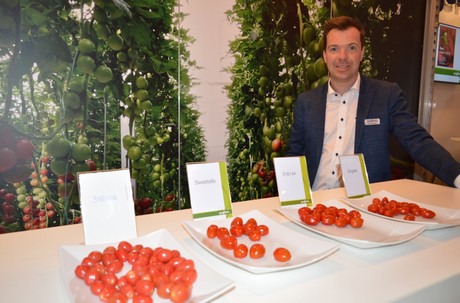 Smaaktesten bij Syngenta. Pieter Stijnen laat u graag de vier snoeptomaatjes met elkaar vergelijken