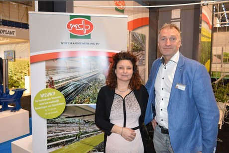 Marieke Delisse en Berrie Schuurman. WDP presenteert de nieuwe horizontale klemveer voor het gemakkelijk bevestigen van lijmstroken tegen Tuta Absoluta