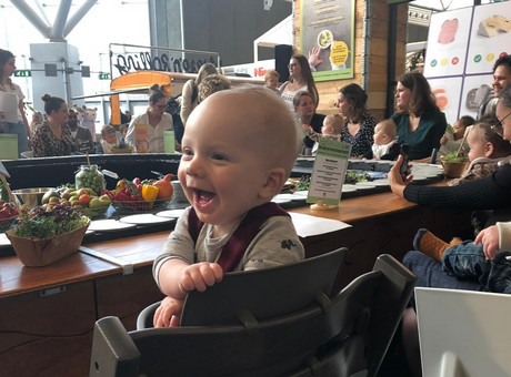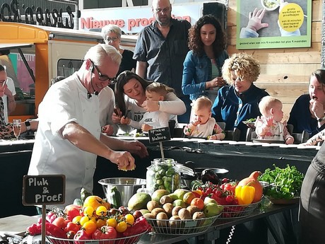 Aanstaande én kersverse ouders kunnen de komende dagen samen met hun baby’s aanschuiven aan de bar in het midden van het restaurant. Ze kunnen hier deelnemen aan de korte, informatieve workshops over gezonde en veilige voeding. Na afloop kan er een vers groenten- en/of fruithapje geproefd worden van de ronddraaiende bar. Tijdens de beurs worden verse groenten en fruit uitgedeeld met bijbehorende recepten. Hiermee kunnen ouders inspiratie opdoen voor het maken van gezond eten voor thuis.