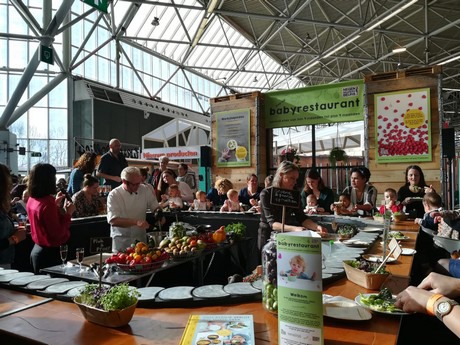 Het eerste Pop-Up Babyrestaurant van Nederland is te vinden in hal 8 in de RAI in Amsterdam. Het restaurant is van 20 t/m 24 februari geopend van 11:00 tot 18:00 en op donderdag 21 en vrijdag 22 februari tot 22:00. Het Babyrestaurant is een initiatief van de Negenmaandenbeurs, het Nationaal Actieplan Groenten en Fruit (NAGF), het Voedingscentrum en GoodBabyFood.