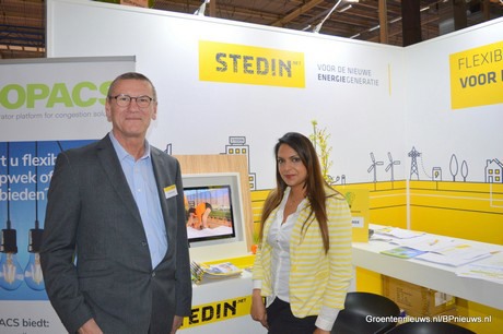 Jacqueline Fernandes-van Lit en Leen Molenaar, dé glastuinbouwgezichten van Stedin, dat op de beurs GOPACS presenteerde. Het is een slimme oplossing om filevorming op het elektriciteitsnet te voorkomen. Op 8 maart volgt een informatiesessie.