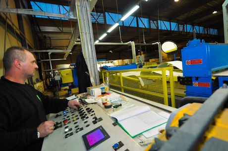 Deze operator bedient de slitter die het bandstaal op de juiste maat maakt.