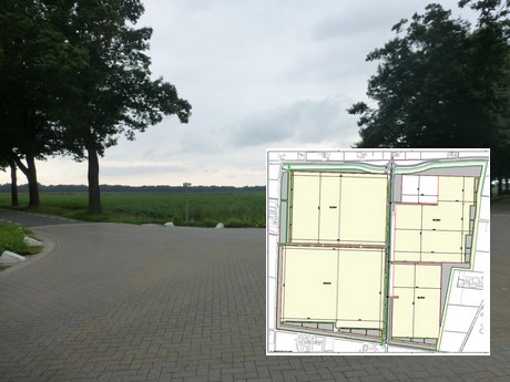 Inzet: voorlopig ontwerp van de contouren van de kavels.