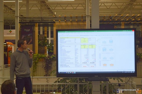 De cijfertjes en schema’s met micromollen werden vervolgens omgewisseld in economische cijfers, want Kurt presenteerde het TCO-model, waarin de total costs of ownerships van diverse belichtingsoplossingen doorgerekend kunnen worden voor de afschrijvingstijd van zeven jaar. Door verschillende variabelen in te vullen of aan te passen, is het mogelijk om een vergelijking te maken tussen bijvoorbeeld 1 hectare LED en 1 hectare HPS/SON-T om dan te zien wat er onder aan de streep aan kostenverschil overblijft. Dat verschil bleek in het, weliswaar vereenvoudigde, voorbeeld opvallend klein. Per vierkante meter bedragen de kosten voor LED slechts enkele tientallen eurocenten meer dan bij HPS/SON-T.