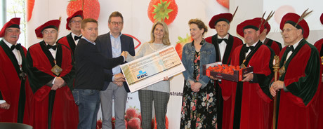 Deze primeuraardbeien gingen naar koper Delidis aan de prijs van € 500 per 500g. Door inbreng van Coöperatie Hoogstraten cv, in naam van de telers, werd de opbrengst verdubbeld. Zo mocht Maaike Cafmeyer, ambassadrice van Ups & Downs, een mooie cheque van € 8.000 in ontvangst nemen. Ups & Downs is een vereniging voor personen met een bipolaire stoornis of chronische depressie en hun omgeving. Wat ze met het geld gaan doen? Erika Danckaers van Ups & Downs: “Wij zijn heel dankbaar voor deze gulle gift. Onze organisatie werkt namelijk volledig op basis van vrijwilligers. Met het geld willen wij vooral lotgenotenbijeenkomsten organiseren. Daarnaast willen wij psychische kwetsbaarheid onder de aandacht brengen en het stigma doorbreken. Zo organiseren wij tal van lezingen in scholen en instellingen en dat willen wij dit jaar ook opentrekken naar bedrijven. Ook op de werkvloer is er namelijk nood aan het doorbreken van het taboe. Het bedrag zal dus zeker goed besteed worden,” besluit Erika.