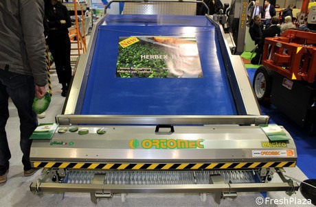 "De nieuwe machine oogst veldsla die wordt gesneden door metalen staven achter het snijmes. De sla wordt opgetild, gereinigd en getransporteerd via een transportband. Het is een machine, beschikbaar in elektrische versie of met interne verbrandingsmotor, die zowel in de kas als in het veld kan worden ingezet. Herbex II kenmerkt zich door zijn snelheid en reiniging van het product", zegt Nicola Gallo, verkoopmanager en medeoprichter van Ortomec.