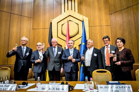 Alle partners samen: Hans-Jürgen Best (gemeente Essen), Thomas Schlich (Landgard Obst & Gemüse GmbH & Co. KG), Prof. em. Hubert Schulte-Kemper (CEO FAKT.AG), Dr. István Nagy (Hongaarse minister van Landbouw), Mihaly Varga (KÉSZ Holding Zrt.), Zsolt Jamniczky (E.ON)